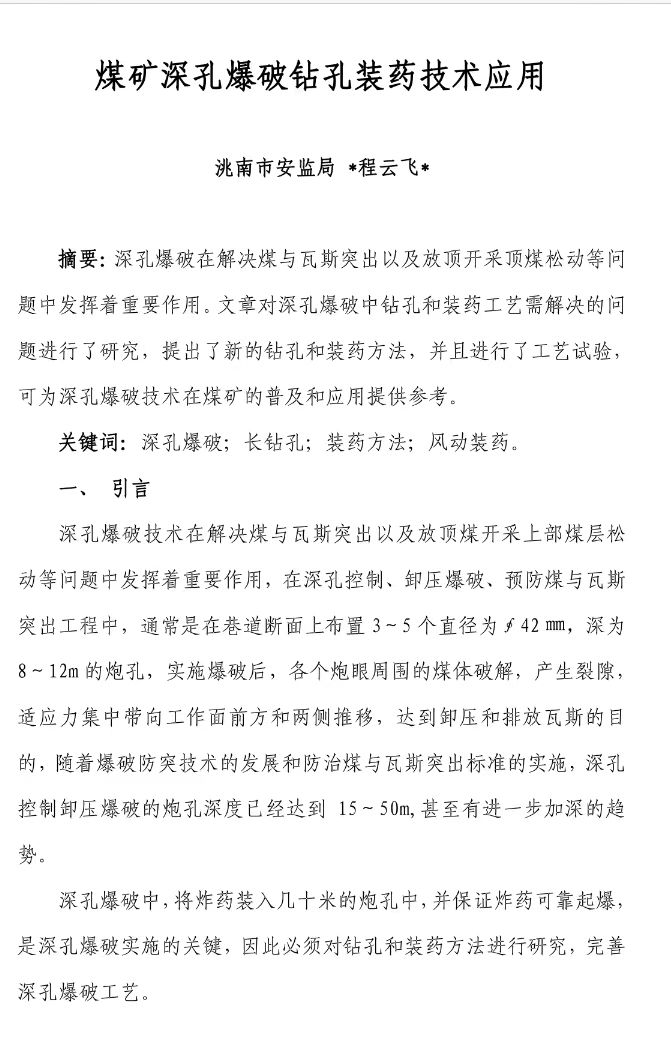 煤礦深孔爆破鉆孔裝藥技術(shù)應用--BQFM煤礦系列